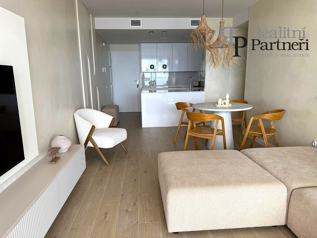 Apartmán se nachází ve 25. patře z 36, s celkovou podlahovou plochou 103,63 m² a nabízí úchvatné panoramatické výhledy na okolí, ale hlavně na Středozemní moře a město. Prostorná terasa tyto výhledy ještě umocňuje, každý den si můžete užívat slunce a mořský vánek v absolutním soukromí.