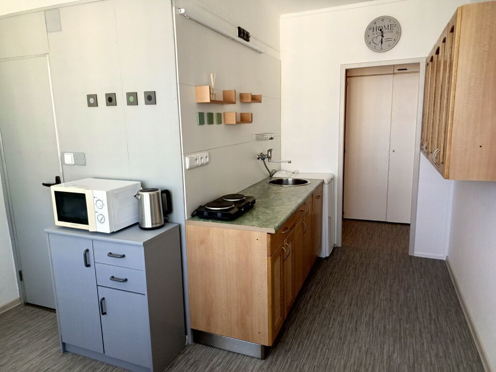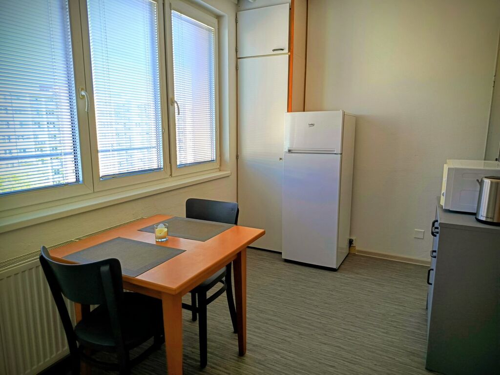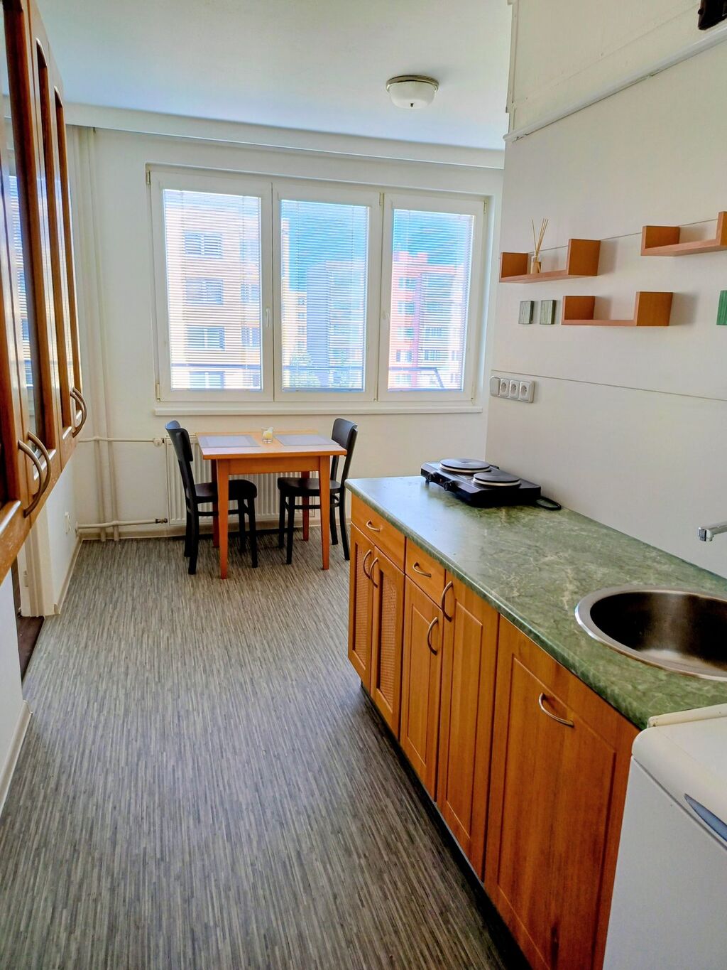 Nabízíme k pronájmu byt 1+1/43 m2 ve Vodňanské ulici, na sídlišti Vltava v Českých Budějovicích. Byt se nachází v 6. patře z 8, v domě je výtah. Dispozice bytu: Vstupní předsíň s botníkem a šatní skříní, odtud vchod na toaletu, do kuchyně a obýváku. Kuchyň je spojená s jídelnou, odtud vstup do koupelny s menší vanou. Vybavení kuchyně: kuchyňská linka, lednice s mrazákem, mikrovlnná trouba, 2 plotýnkový vařič, pračka, jídelní stůl s 2 židlemi. Na oknech jsou žaluzie, podlaha plovoucí a PVC. V místě veškerá občanská vybavenost - ZŠ, MŠ, MHD, obchody, supermarket Lidl, restaurace, dětské hřiště, zdravotní středisko atd. V blízkosti cyklostezka kolem řeky Vltavy. Dlouhodobý pronájem min. na 1 rok. Pro max. 2 dospělé osoby, nekuřáky, bez domácích mazlíčků. Nájem: 11.000,- Kč + zálohy na energie a služby 2.500,- Kč + zálohy na elektřinu (nájemce hradí zálohy přímo Eonu). Vratná kauce 1 nájem - 13.500,- Kč, provize RK též 1 nájem. Parkování v přilehlých ulicích a na parkovištích. Byt je volný ihned.