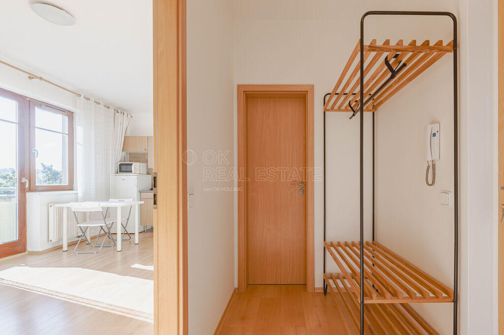 Prodej světlého bytu 1+kk s prostorným balkonem a výhledem na Prahu, ul. Vladycká, Hostivař
