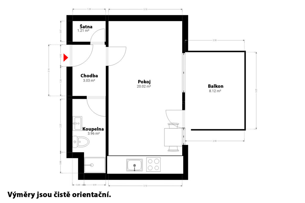Užitná plocha: 34,4 m² (byt 28 m² + balkon 6,4 m²)