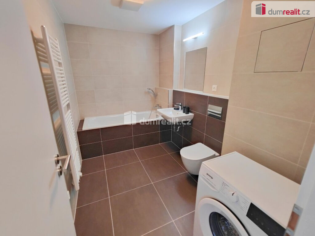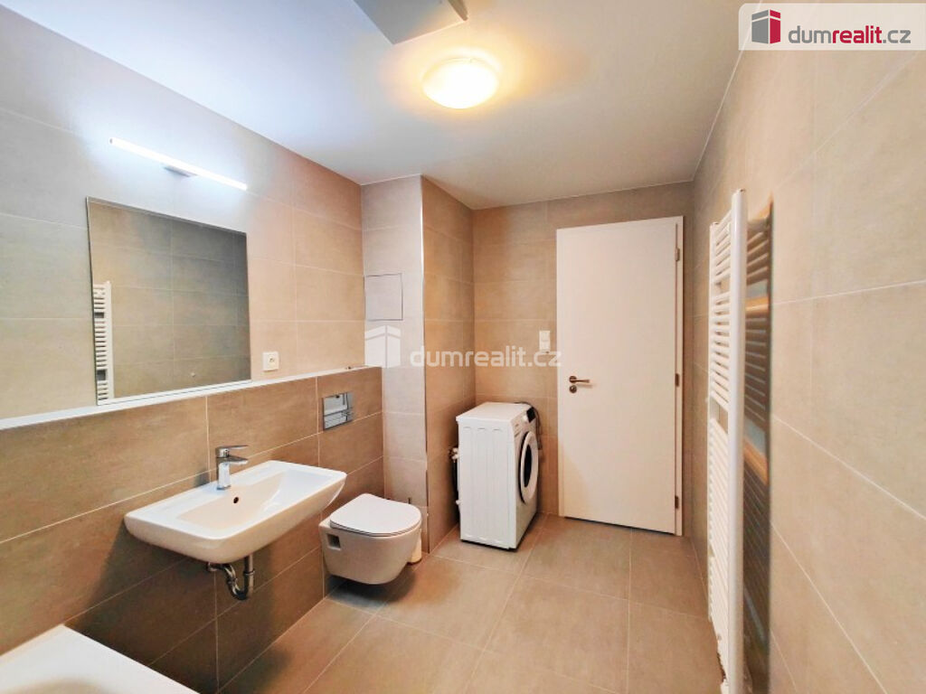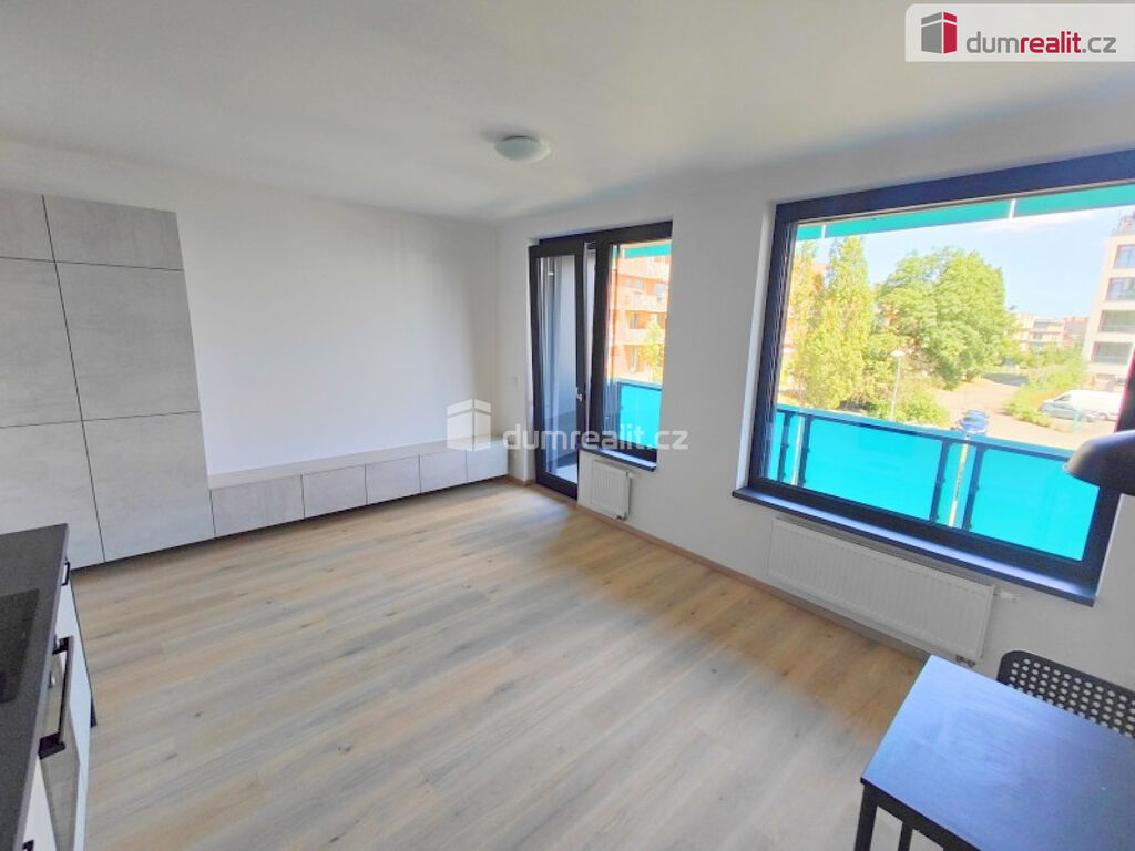 Dumrealit.cz Vám zprostředkuje exkluzivně pronájem nového bytu 1+kk (31,6 m²) s balkonem (7,7 m²) v novostavbě projektu Na Vackově, ulice Olgy Havlové, který je volný od prosince k nastěhování, prohlídky jsou již možné. Dispozice tohoto bytu je: obývací pokoj s kuchyňským koutem (20,5 m²) se vstupem na balkon (6,7 m²), zádveří (3 m²) a koupelna (8,1m²) s vanou, WC, umyvadlem a prostorem na pračku - v ceně nájmu je pračka. Byt je nový, je vybaven: kuchyně + spotřebiče – vestavěná trouba, indukční deska, digestoř, vestavěná menší lednice s mrazákem, myčka nádobí, vestavěná mikrovlnka, dále TV stěna bez Tv se skříní, v předsíni pak šatní skříň s botníkem, kompletní led osvětlení, pračka v koupelně. Ostatní je prázdné. Okna v bytě jsou plastová, s venkovními žaluziemi ovládané přes tlačítko. Orientace bytu je na východ – velmi praktické. Na podlaze v obývacím pokoje je vinylová podlaha, chodba a WC je praktická dlažba. Vstupní dveře do bytu jsou bezpečnostní. K bytu nepatří sklep ani parkovací stání. Lze parkovat na ulici, modré zóny, lze mít trvalé bydliště. Byt je vhodný max pro dvě osoby. Zvíře se řeší indivuálně. Služby jsou plně vyúčtovatelné, elektroměr se hlásí na nájemce. V okolí je absolutní klid, jde o rezidenční oblast, v okolí jsou obchody, zastávka MHD – Olgy Havlové je 2 minuty od domu. Velmi doporučuji všem, kteří hledají nový a světlý byt 1+ kk s balkonem v Praze 3. Ev. číslo: 650910.