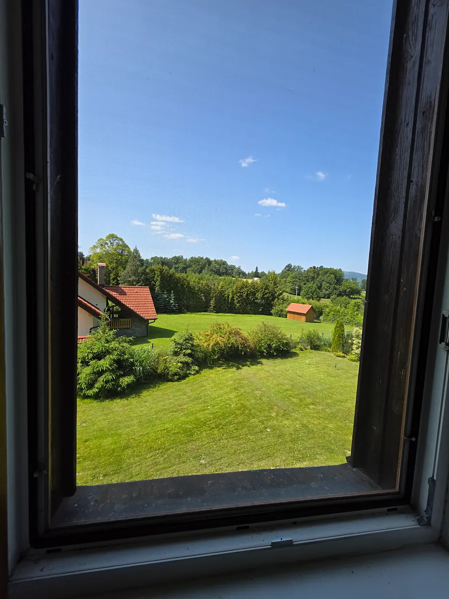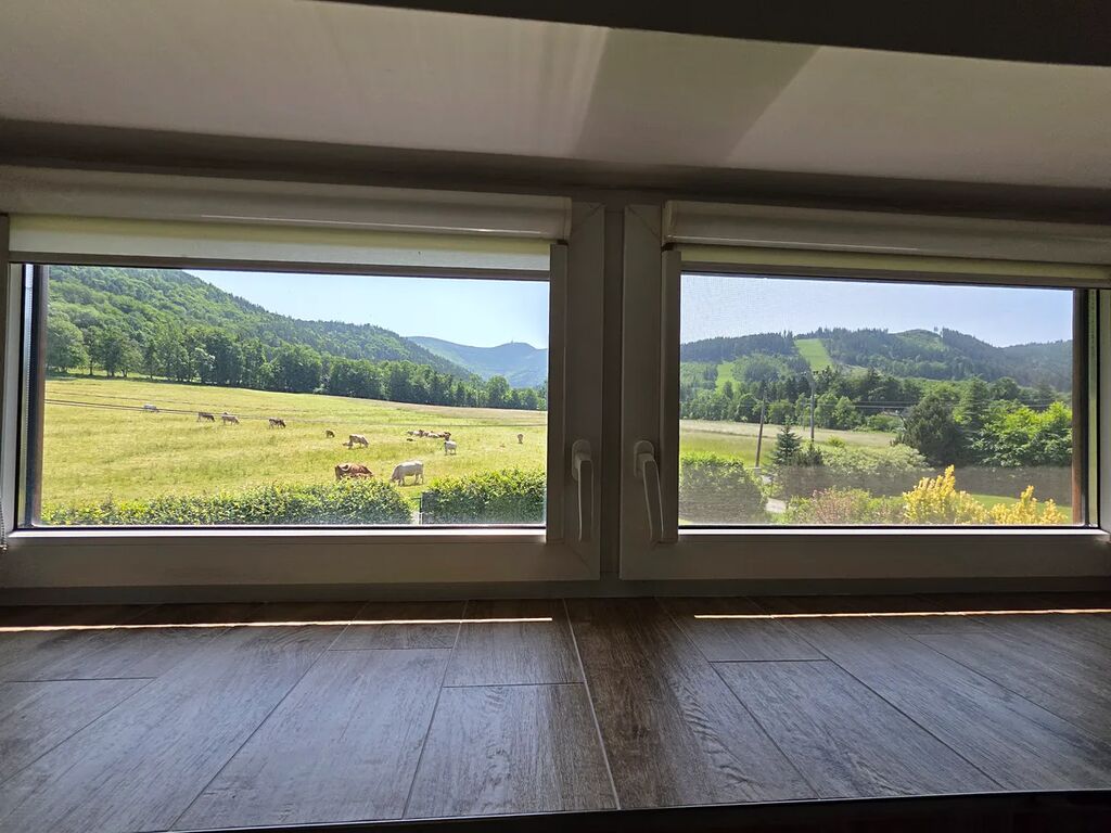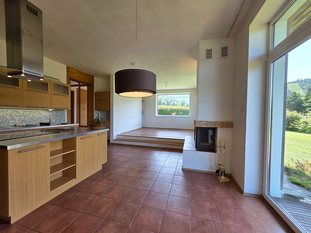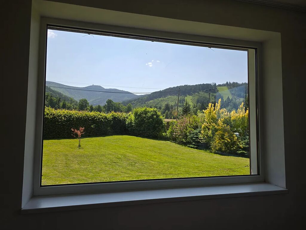 dvougaráže. Dále obývací pokoj s nádherným výhledem na Lysou