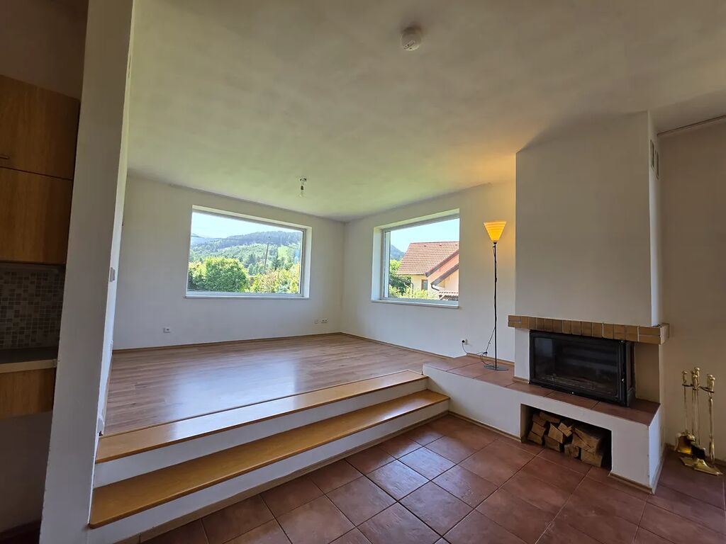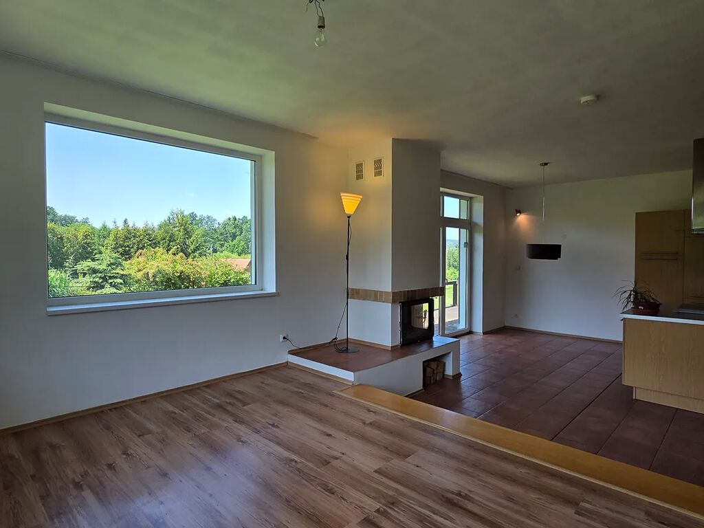 horu a krbem, propojený s kuchyňským koutem a vstupem na