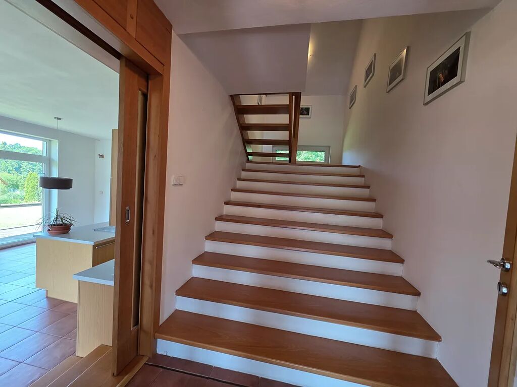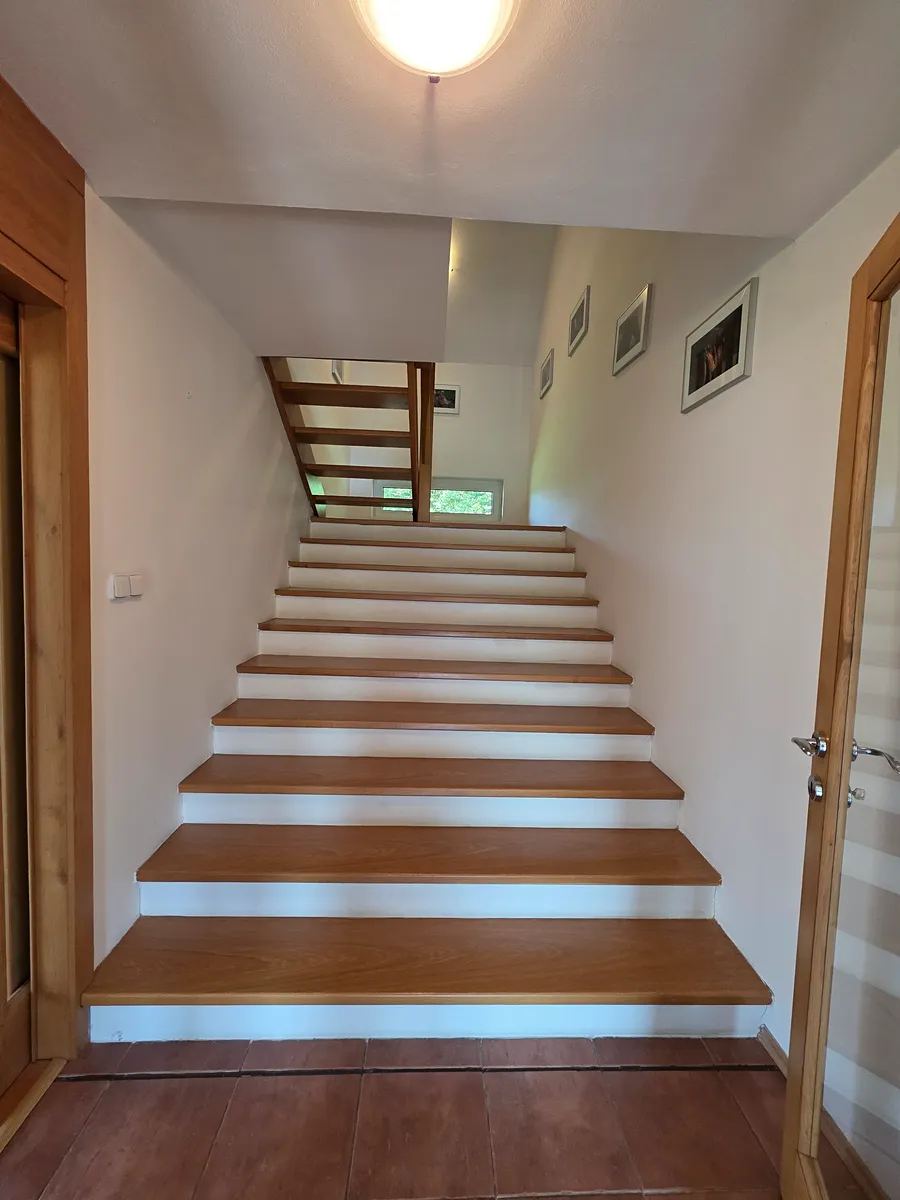 Přízemí domu je propojeno s 1. poschodím domu prostorným dřevěným schodištěm.
