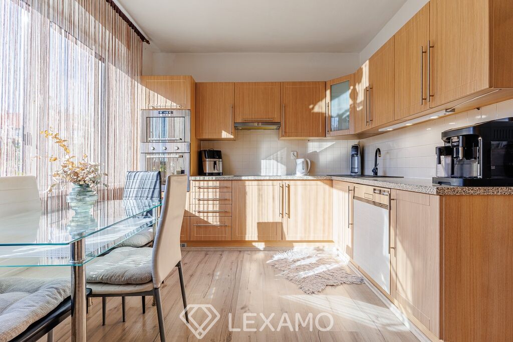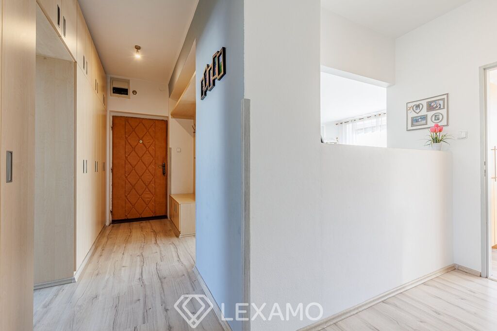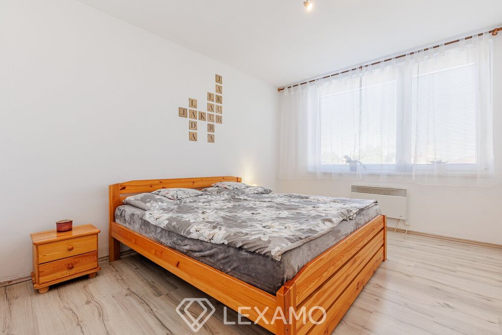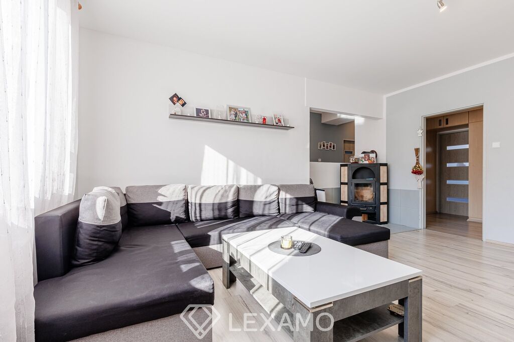 Dispozice je promyšlená a funkční: vstup tvoří prostorná předsíň s velkou vestavěnou skříní, srdcem bytu je prostorný obývací pokoj s krbovými kamny navozujícími útulnou atmosféru a úsporný provoz. Kuchyň s jídelnou poskytuje pohodlné zázemí pro každodenní stolování. Koupelnová část je řešena odděleně – samostatná koupelna s vanou, samostatné WC.