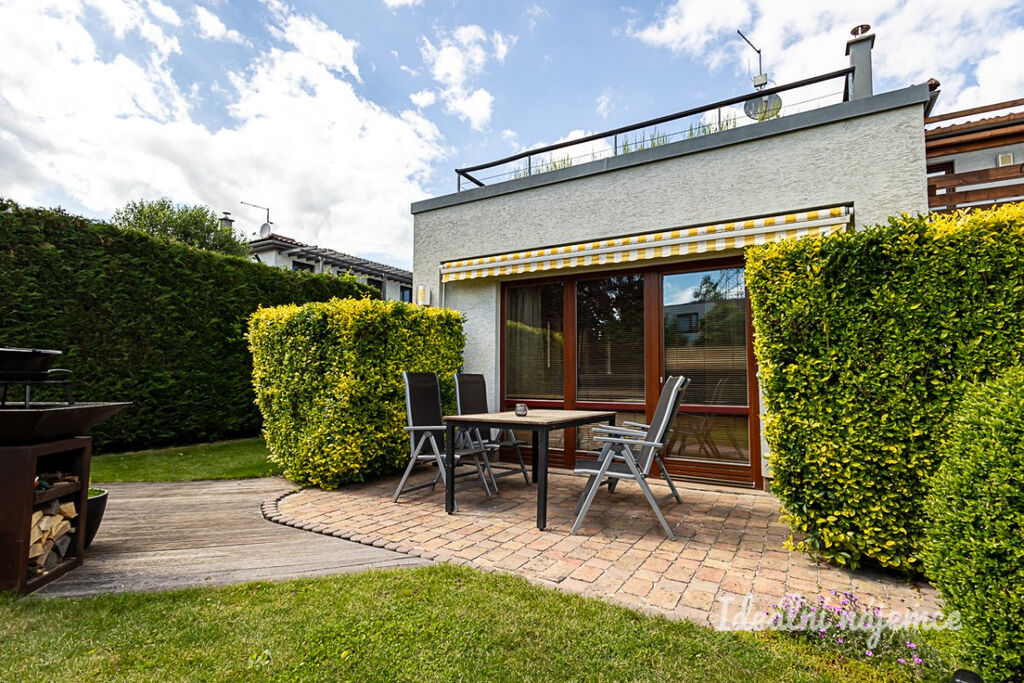 K dlouhodobému pronájmu nabízíme plně zařízený dvoupodlažní rodinný dům dispozice 4+kk o rozloze 131 m2 na prostorném pozemku se zahradou v klidné rezidenční lokalitě středočeských Měšic nedaleko Prahy. Přízemí vévodí rozlehlý obývací pokoj výměry přes 33 m2 s dobře vybaveným částečně odděleným kuchyňským koutem s přírodním osvětlením. Na každém podlaží je jedna ložnice a koupelna s toaletou, v horním patře je pracovna s přístupem na terasu. Vytápění domu a ohřev vody je realizován plynovým kotlem. Kromě zahrady samotné je k užívání k dispozici i bazén a sauna. Součástí měsíčních záloh jsou již energie a vysokorychlostní internet.