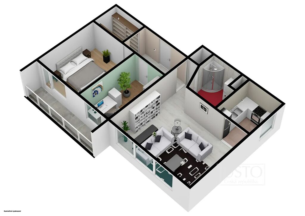 Zálohy na služby (5.100 Kč pro 3 osoby) zahrnují dodávku studené a teplé vody, teplo, úklid společných prostor, elektřinu ve společných prostorech a odvoz odpadu. Elektřina a plyn se převádí na nájemce, odhadované náklady cca 1.500 Kč.