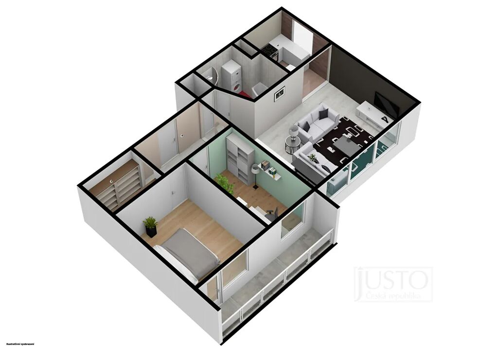 K bytu náleží lodžie a uzamykatelná komora nacházející se na stejném patře.