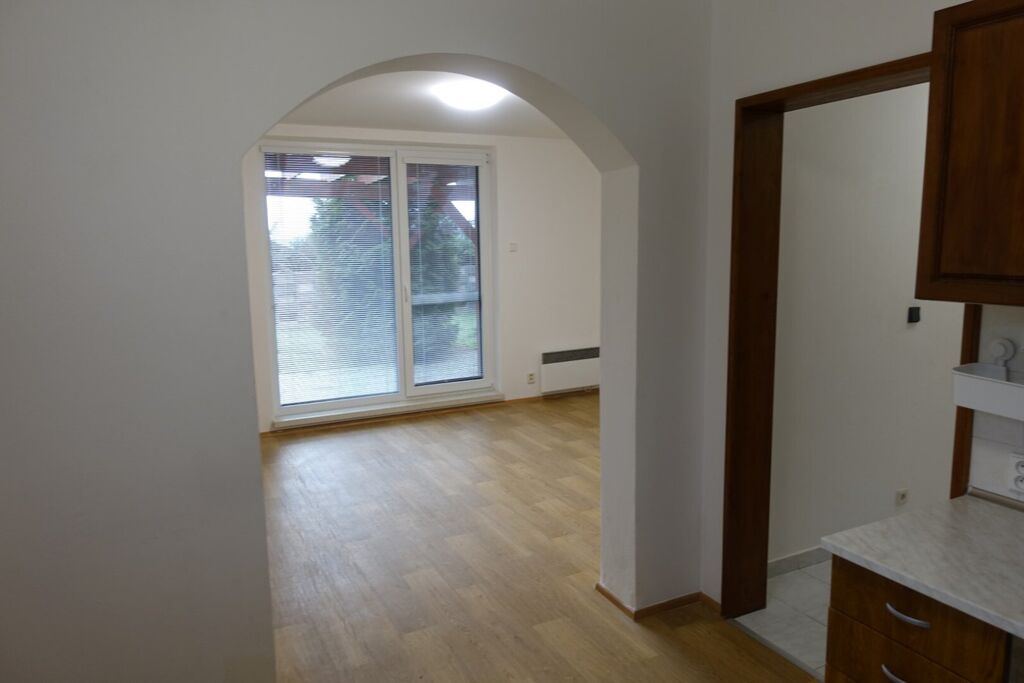 Dispozice bytu tvoří chodba, obývací pokoj, terasa s pergolou, ložnice, kuchyně, koupelna, samostatné WC a komora. K bytu náleží sklep v suterénu domu. Byt je po částečné rekonstrukci v r. 2022, vč. nových plastových oken a dveří s izolačními 3-skly. Vytápění je el. přímotopy, ohřev vody je el. bojlerem, vše s vlastním měření spotřeby. Byt je nezařízený, ihned volný k nastěhování. Parkování je u domu na spoluvlastněných pozemcích.