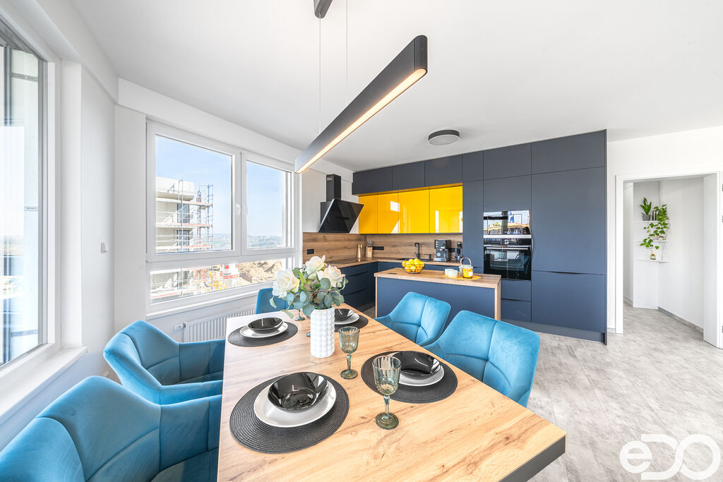 - Smart Home na maximum: Osvětlení a senzory Philips Hue (s možností rozšíření), špičkové, chytré spotřebiče Haier (včetně extra široké 70cm vestavné lednice) a inteligentní ovládání topení Netatmo – vše pro váš komfort a úspory.