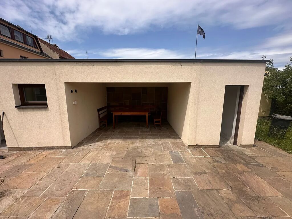 Na pozemku se nachází velká zahrada s bazénem, luxusní kamennou dlažbou a studnou na zalévání.
