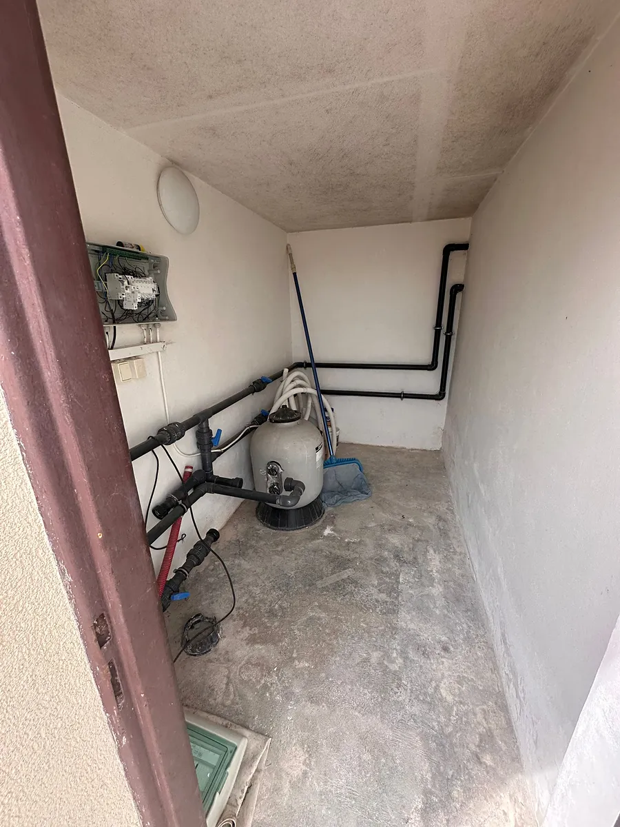 Vytápění zajišťuje ústřední plynový kotel, rozvody vody jsou v plastu, nová elektroinstalace, kanalizace i přívod plynu.