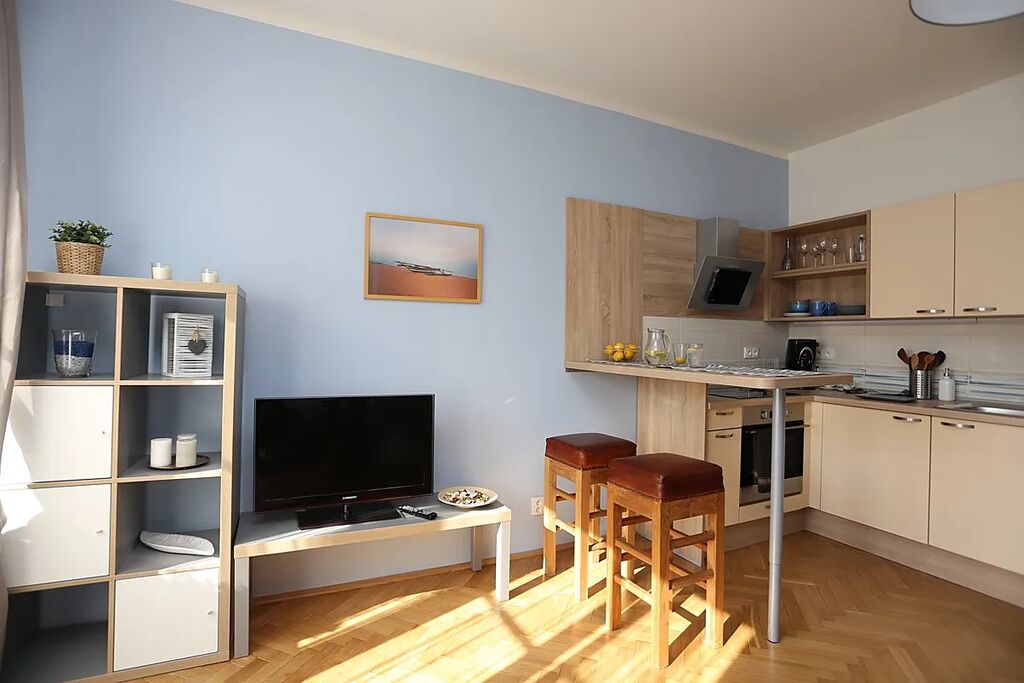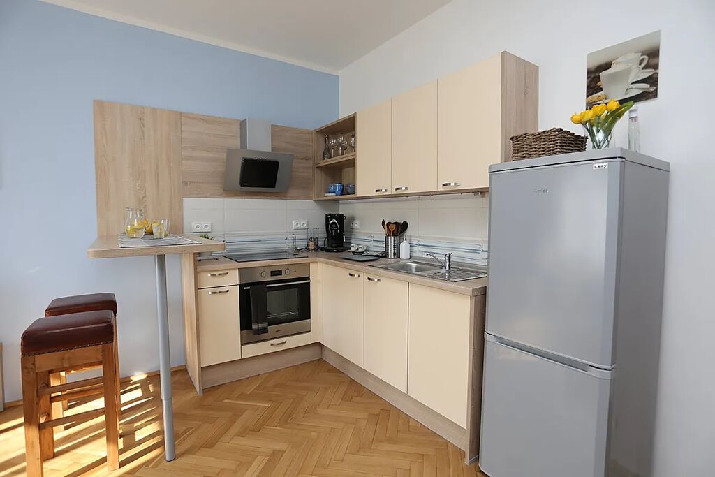 Byt je čistý, útulný. Vybavený nábytkem a spotřebiči, včetně pračky. Vytápění je ústředním topením.