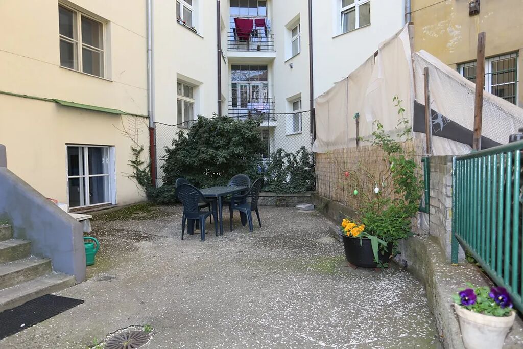 K domu patří upravená zahrada ve vnitrobloku, která slouží k venkovnímu posezení.