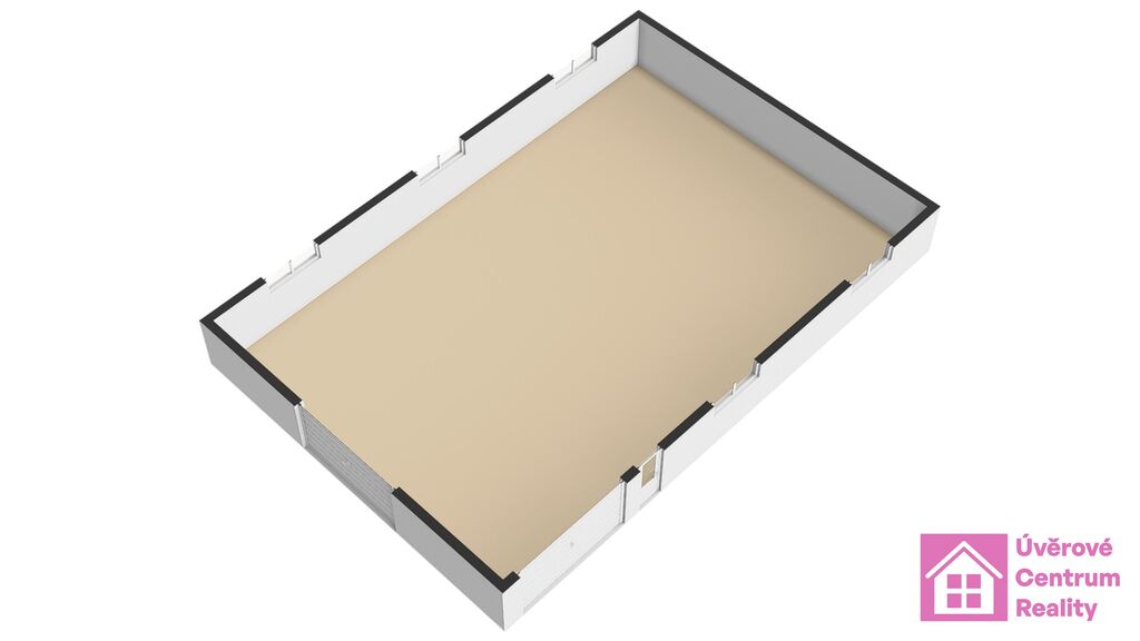 Podlaha je broušený beton. Světlá výška je 4 metry. Jsou zde sekční vrata, vhodná pro průjezd většího automobilu.