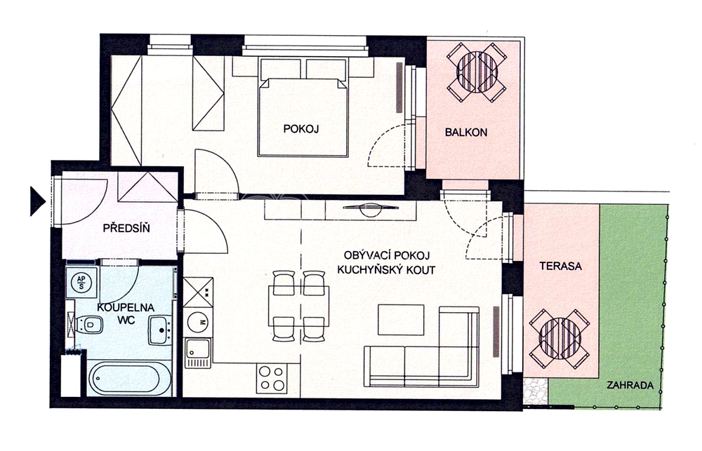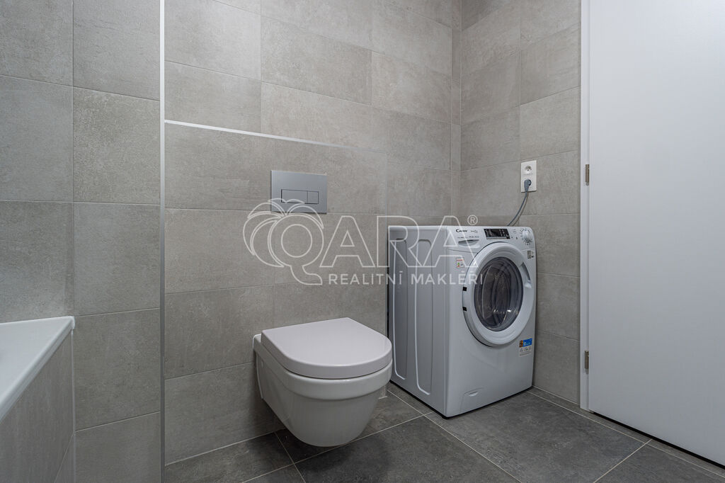 Byt je plně vybaven (viz foto) a disponuje dostatečným množstvím úložných prostor. V koupelně je kvalitní sanita značky Villeroy & Boch a pračka se sušičkou (2 v 1).