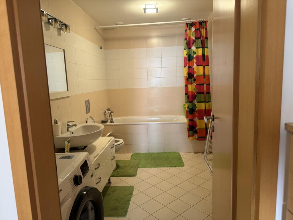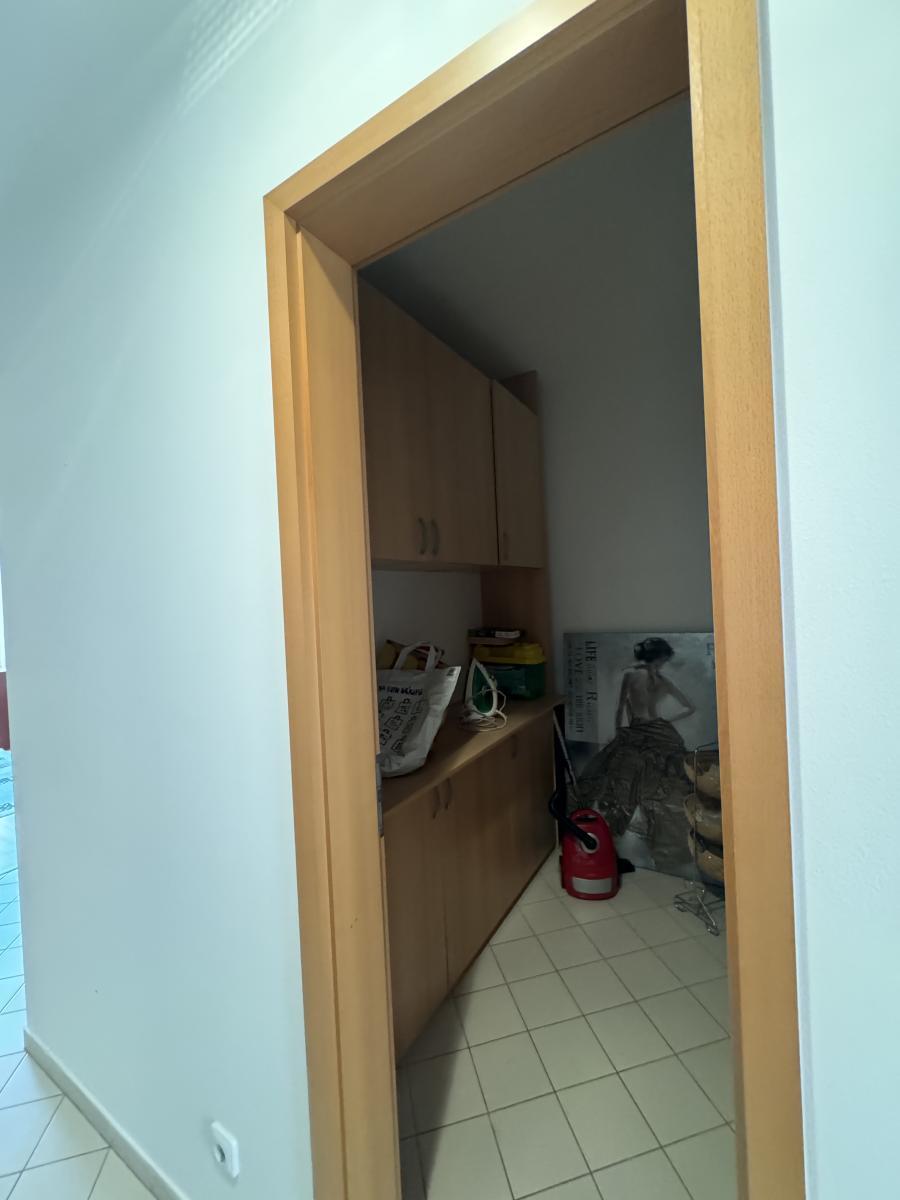 Kuchyň je plně vybavena spotřebiči (trouba, varná deska, digestoř, myčka). Obývací pokoj s přímým vstupem na balkon poskytuje dostatek světla díky velkým oknům orientovaným na jih.