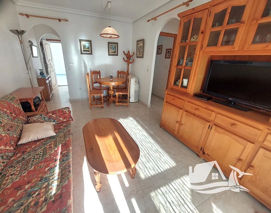 Apartmán se skládá ze dvou ložnic, prostorného obývacího pokoje s jídelní částí, samostatné kuchyně, koupelny a prosklené terasy s výhledem na lagunu La Mata. Byt je plně zařízený a vybavený, takže můžete rovnou přijet a užívat si svůj nový středomořský životní styl bez dalších starostí.
