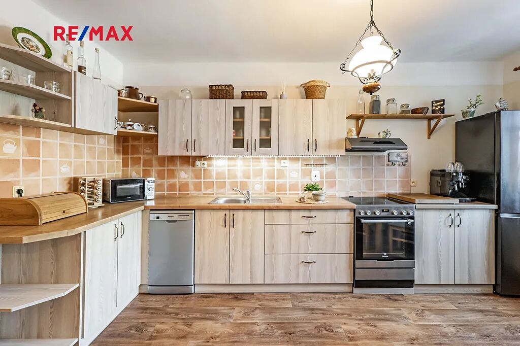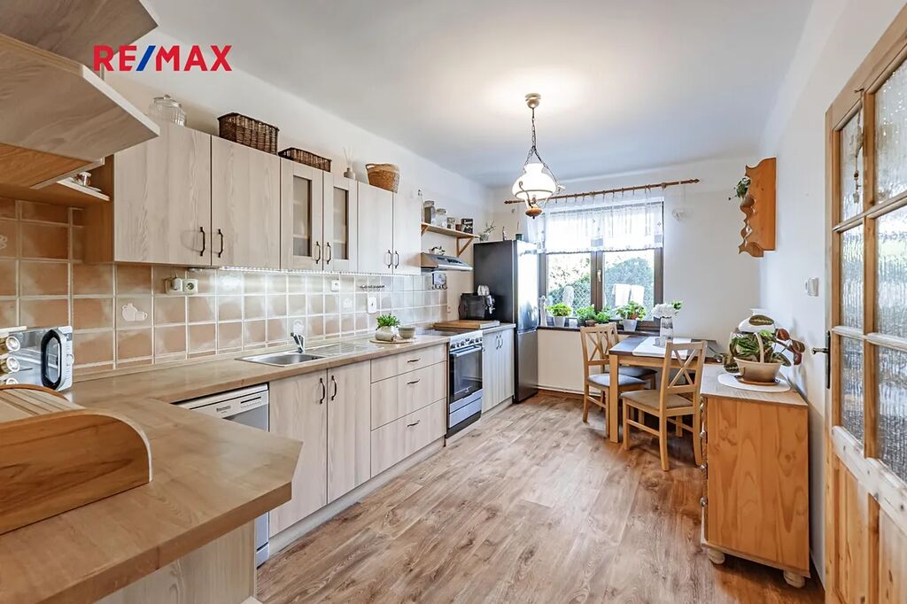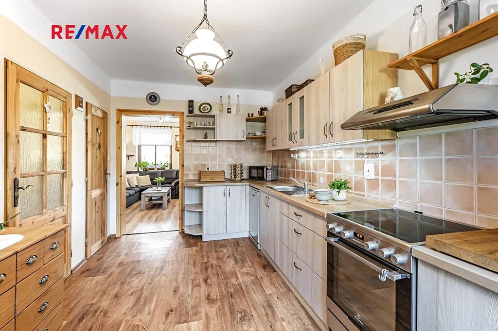 Podlahy jsou vinylové ve většině domu. V největším pokoji v patře je podlaha plovoucí. Kuchyně je stará cca pět let. Dům je odizolovaný (historicky byl podřezaný). Materiál střechy je kvalitní tzv. Betonpres. Nad ložnicí v přízemí a nad východem do zahrady je střecha z tašek KM Beta. Stropy v patře jsou zateplené stejně jako půda a štít (20 cm vaty). Na domě jsou instalované bezpečnostní kamery.