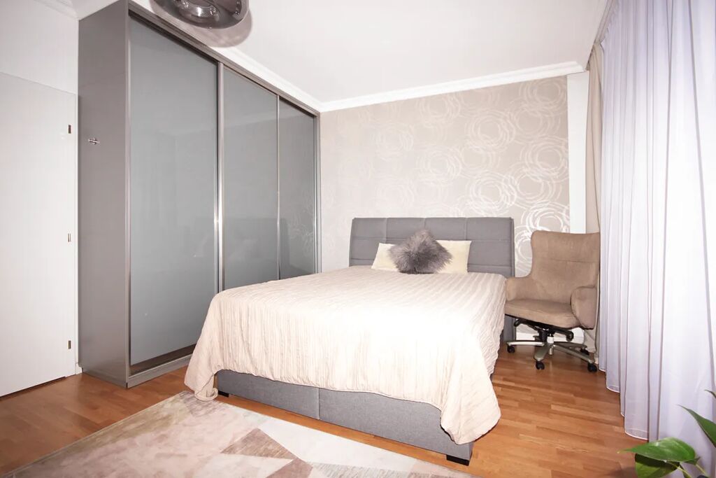 Velkorysý prostor: Byt disponuje hlavní ložnicí o ploše 23 m2 s vlastní koupelnou a šatnou. Další dvě ložnice (16 m2 a 11,5 m2) jsou ideální pro rodinu či hosty. Prostorný obývací pokoj (40 m2) s přístupem na balkon (8 m²) nabízí nádherný výhled do parku.