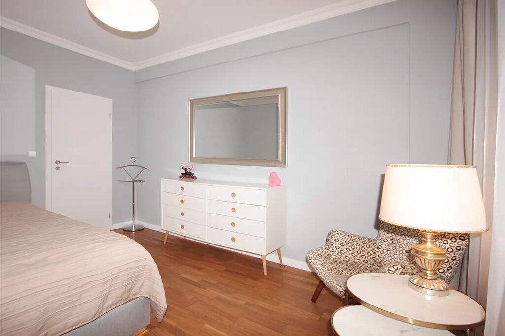 Luxusní interiérové vybavení: Byt prošel nedávnou rekonstrukcí s použitím špičkových materiálů. Kvalitní sanita Villeroy & Boch a Grohe. Kuchyň je vyrobena na míru a disponuje moderními spotřebiči, mramorovou pracovní deskou a obkladem. Parapety na oknech jsou mramorové, což dodává bytu punc luxusu. Byt má dřevěné parkety v obytných místnostech a velkoformátovou dlažbu v koupelnách. Výška stropů 2,70 m a dřevěná okna s venkovními žaluziemi dodávají prostoru eleganci a moderní styl. Vstupní dveře jsou bezpečnostní typu NEXT.