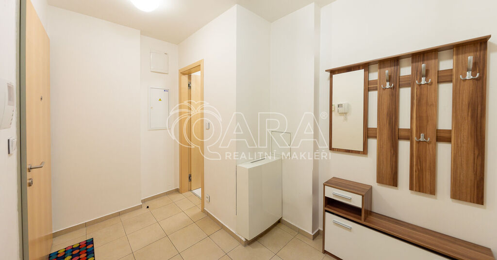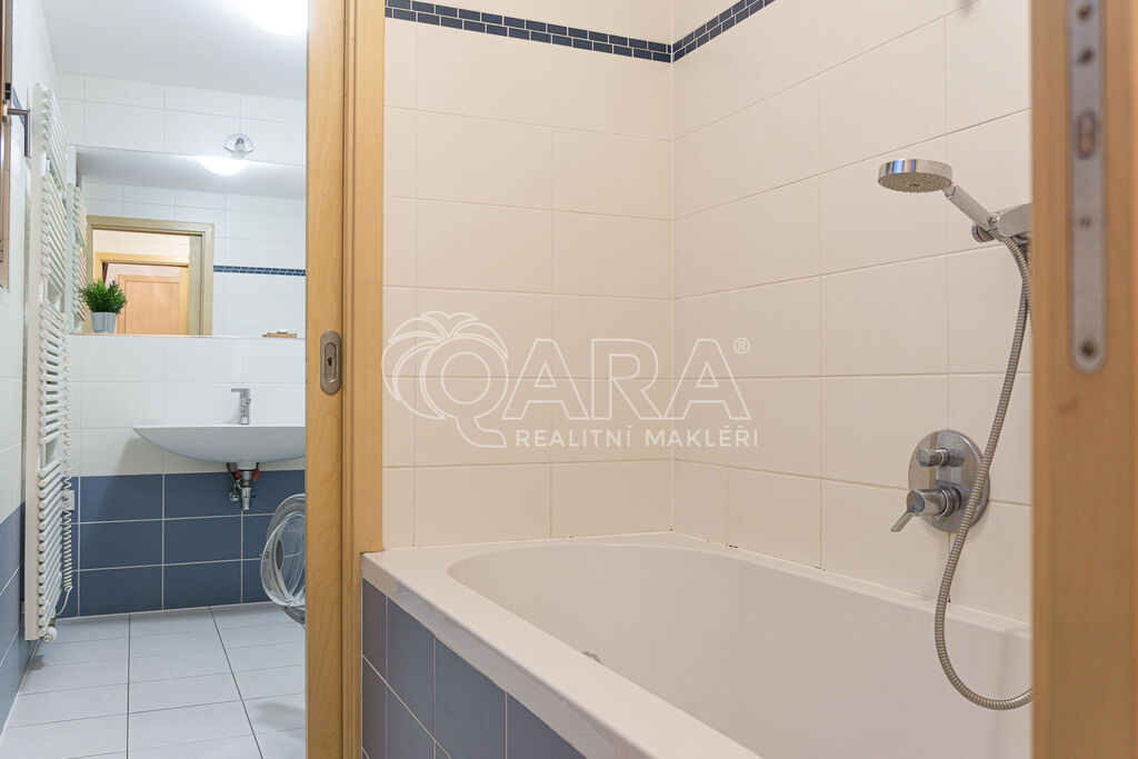 Koupelna je vybavena vanou a toaletou. Díky francouzským oknům v obývacím pokoji je byt velmi světlý, venkovní žaluzie na oknech umožňují regulaci světla podle vašich potřeb. Pokoje jsou vybaveny klimatizací. Byt se pronajímá nezařízený.
