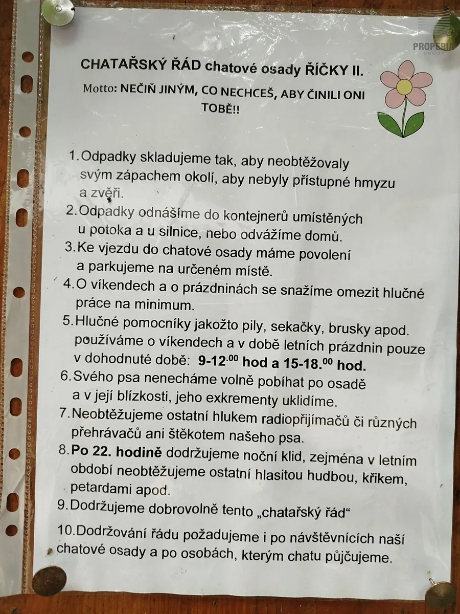 Prodej útulné chaty 54 m² v OV, Ochoz u Brna - CHKO Říčky. Nachází na vlastním pozemku o CP 27 m2 a přiléhá k ní zahrada s posezením ve vlastnictví lesů ČR - neplatí se žádný pronájem. Poloha je v krásné krajině v klidném lese nad protékající Říčkou u Kaprálova Mlýna. Stavba je udržovaná ve velmi dobrém stavu. Chata byla posledních 10 let celoročně užívaná. V případě zájmu zůstává veškeré vybavení, materiál a nářadí v šopě, který je nachystaný na již nezrealizované plány a úpravy. Elektřina je rozvedena po celém objektu, dostatek pojistných okruhů vše od elektrikáře. Díky kvalitním a širokým zdem se v chatě po vytopení kamny dlouho drží teplo. Voda je z místní studny nebo je možné si přivézt na parkoviště nad chatou. Příjezd po udržované lesní cestě, dostatek parkovacích míst pro všechny chataře. Pokud toužíte po klidu a tichu v nitru přírody, je tato chata právě pro vás. Prohlídky kdykoli po domluvě s makléřkou.