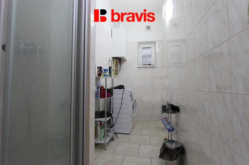 Koupelna je vybavena sprchovým koutem, umyvadlem a pračkou. Toaleta je odděleně.