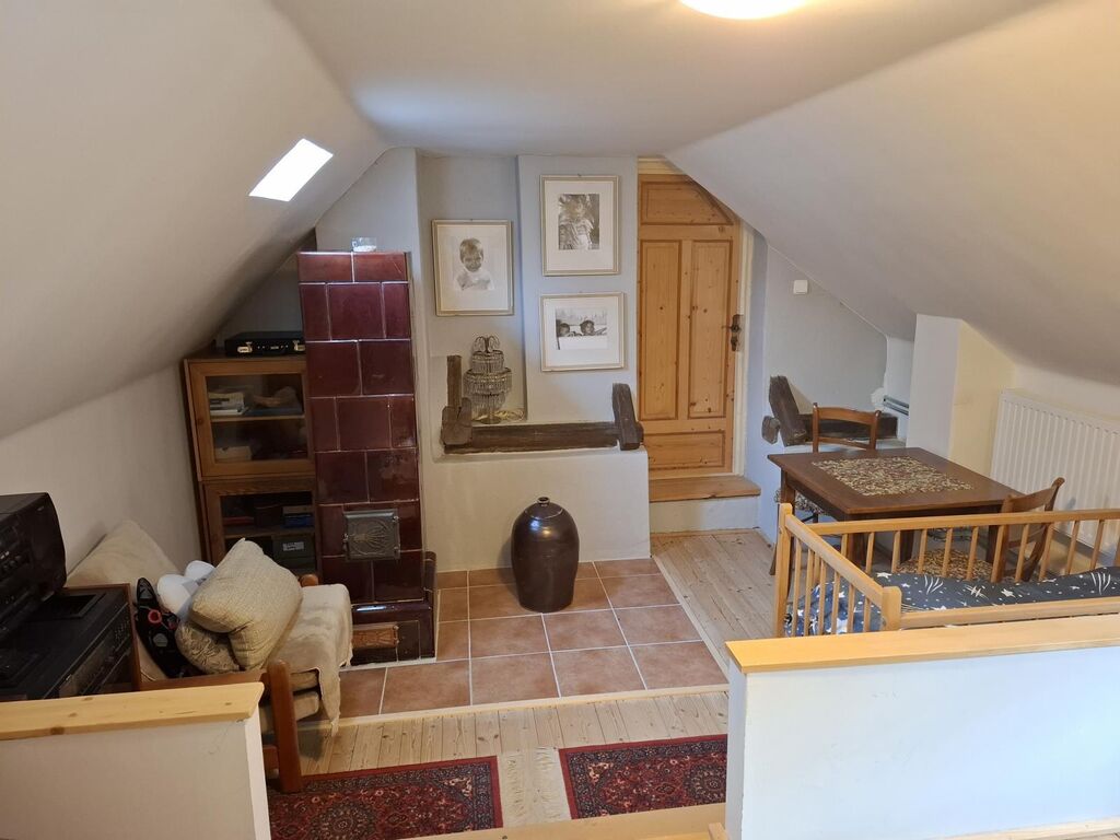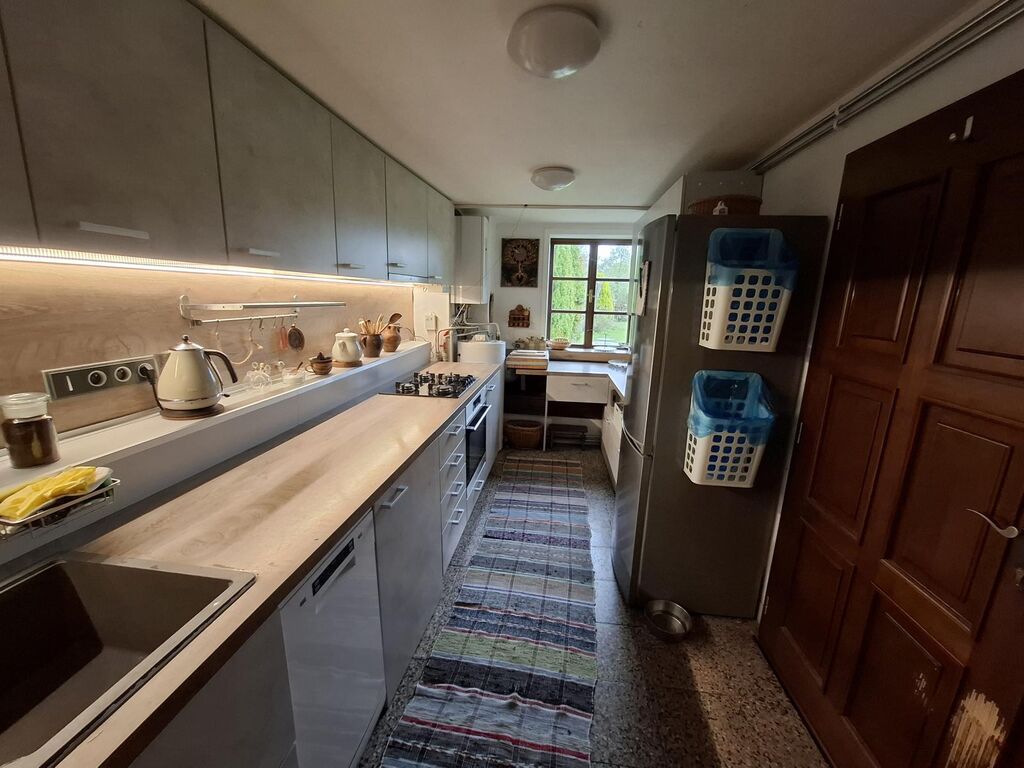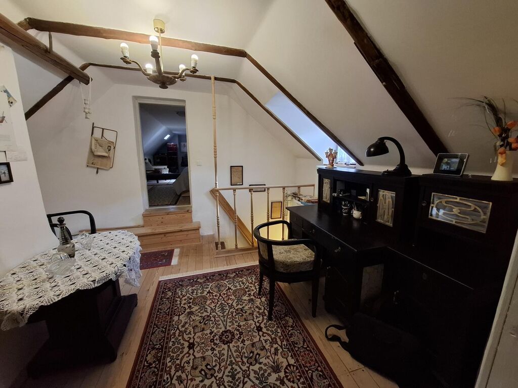 IS: elektřina (230/380V)- rozvody v mědi, vytápění kotel Protherm ( 6 let) , 10x deskové radiátory Vogel Noot ve všech místnostech, koupelna + chodba elektrické podlahové vytápění s termostatem elektrický žebřík s patronou ( 2019), rozvody topení provedeny v uhlíkové oceli SteelPress, regulace teploty na kotli přes GSM modul, v obývací světnici funkční kachlová kamna, radiátory a elektrická kachlová kamna, obývací pokoj deskový radiátor a elektrická kachlová kamna, koupelna elektrický žebřík a podlahové vytápění, v ostatní části nemovitosti radiátory napojeny na elektrický kotel, TUV nepřímotopový zásobník Dražice 125l propojen s elektrokotlem ( ohřev do radiátorů i teplé užitkové vody), voda z vlastní vrtané studny hloubka 24m darling ve sklepě ( 1997), odpady řešeny svodem do ČOV, vyčištěnou vodu lze použít na zálivku do zahrady rozvody cca 77m, dešťová voda jímána do 4 komorové betonové nádrže za domem lze též použít na rozvod vody pro navazující zahradu, plyn nezaveden možnost přípojky, zavedena drátová přípojka ( na případný kabelový internet), zdivo smíšené ( žulový kámen a cihla), podlahy betonové s dřevěnými prkny, dlažba, střecha pálená taška Bramac izolovaná 15 cm izolační vaty a parozábrany ( 1996), stropy - obytná světnice nad ní dřevěný záklop + trámový strop ostatní stropy betonové, podkroví- sádrokarton s přiznanými trámy ( rekonstrukce 2014 ), okna- kastlová dřevěná vnitřní původní vnější dřevěná dubová izolační dvojsklo ( 2021), dveře vyráběné na míru s dřevěnými zárubněmi.