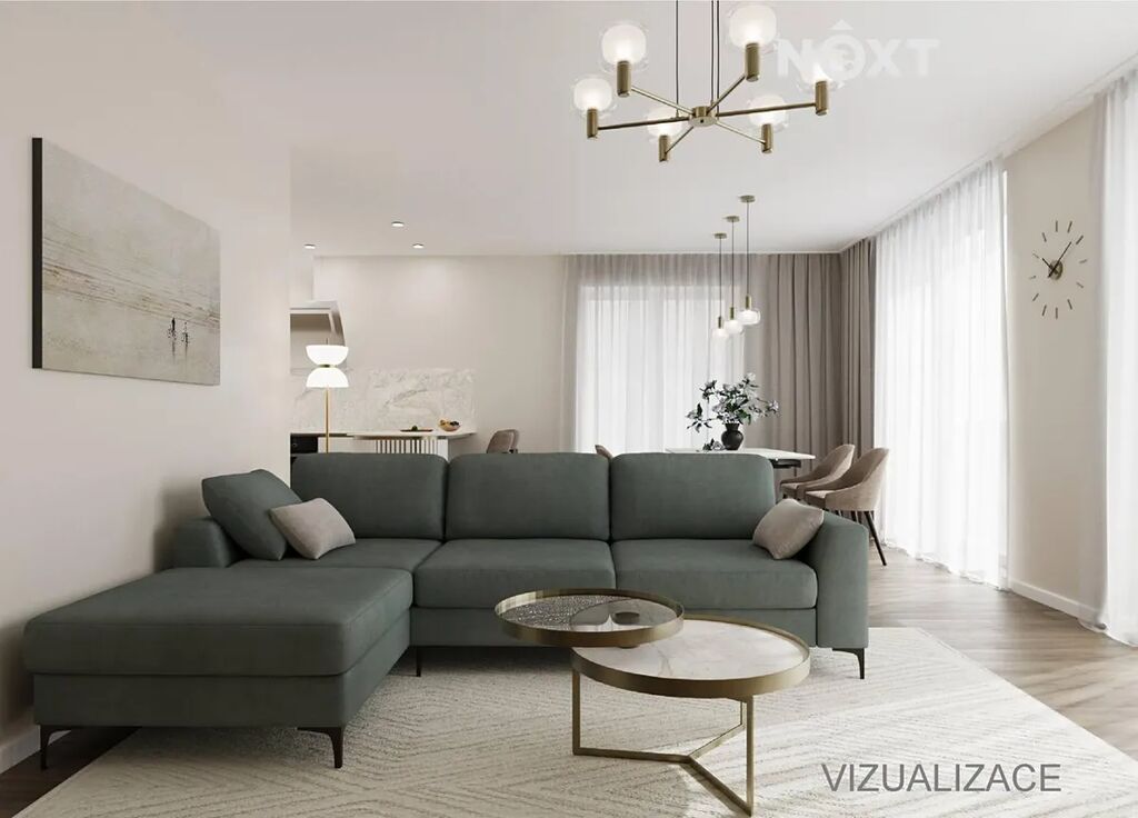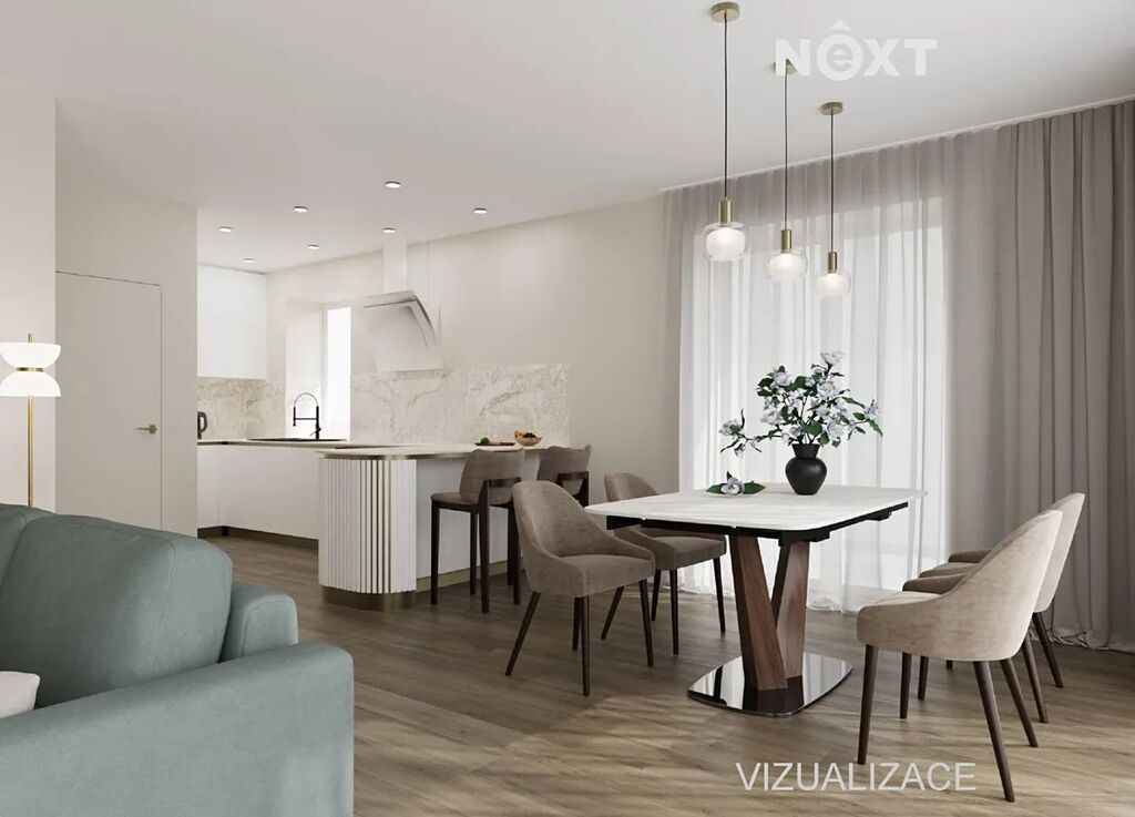 Bytové jednotky budou dokončeny a připraveny k nastěhování do konce roku 2025. V inzerátu jsou použity vizualizace a fotografie, které pomáhají s představou prostoru a možností uspořádání interiéru.