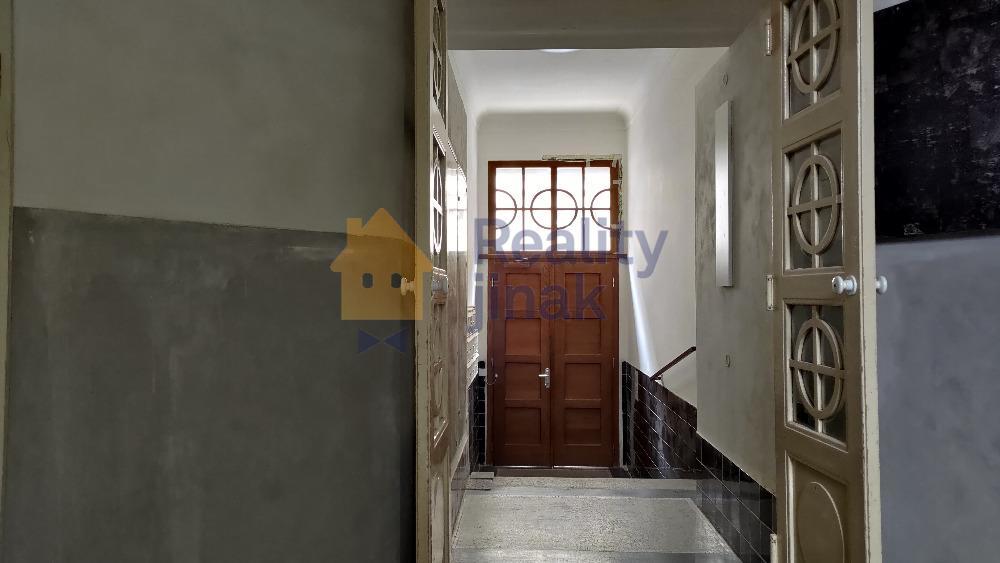 Skládá se ze dvou prostorných pokojů s výhledem do ulice, vstupní haly s lodžií, velké kuchyně a malého pokojíčku s výhledem do zahrady umístěné ve vnitrobloku, koupelny s vanou a samostatným WC. Sklepní kóje je v suterénu domu. Podlahy v pokojích jsou parketové, okna plastová s nutností seřízení a výměny těsnění, dveře původní dřevěné. Byt je vytápěn plynovým kotlem s vlastní regulací, který rovněž ohřívá teplou vodu. Přesto, že byt je ve zvýšeném přízemí domu tak polovina bytu směrem do zahrady je vlastně v prvním patře. Suterén domu je rozdělen na sklepní kóje směrem do ulice a v druhé polovině směrem do zahrady jsou obývané a vytápěné nebytové prostory.