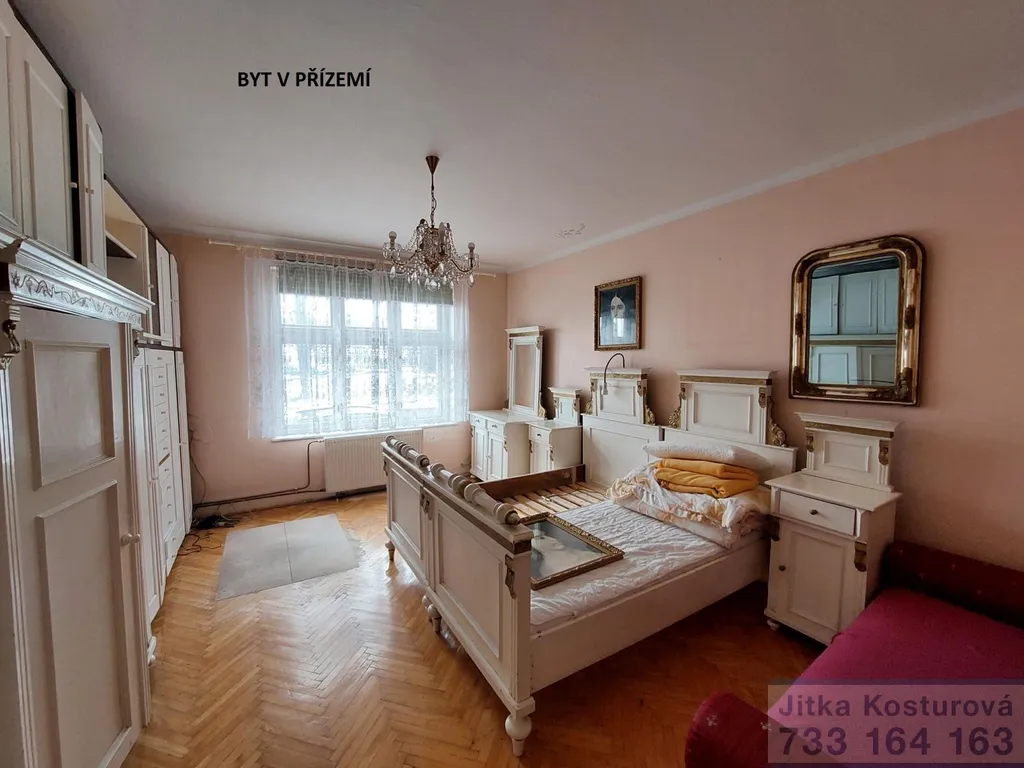 V přízemí se nachází byt o vel. 2+1 s celkovou výměrou cca 66 m2. Vstupní dveře jsou původní dřevěné, se železnými zárubněmi. V bytě se nachází vstupní chodba s korkovou podlahou, po pravé straně se vchází do 2 samostatných pokojů s podlahou z dřevěných parket. Po levé straně se nachází koupelna s umyvadlem, sprchovým koutem, WC a plynovým kotlem zn. Ariston, sloužícím k vytápění pouze tohoto bytu. Koupelna prošla rekonstrukcí cca před 10 lety. Dále je zde kuchyň, vybavená kuchyňskou linkou se spotřebiči - plynová varná deska, elektrická trouba, potravinová skříň.