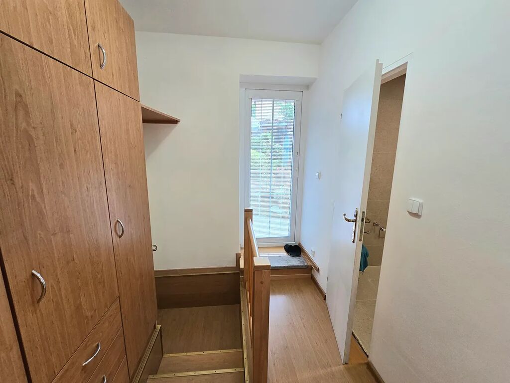 Z chodby je dále vstup do koupelny, samostatného WC a na zahrádku s posezením, která je součástí pronájmu. Pozemek bude přesně vytyčen, součástí je možnost parkování jednoho vozidla přímo u domu.