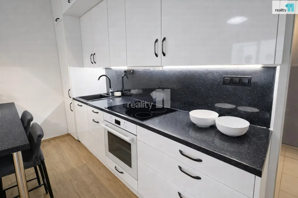 Dominantou bytu je obývací pokoj s kuchyňským koutem v otevřené dispozici, který působí vzdušně a příjemně. Minimalistický interiér podtrhuje elegantní a nadčasový design kuchyňské linky s vestavěnými spotřebiči. Prostor je ideální jak pro každodenní život, tak pro setkávání s přáteli.