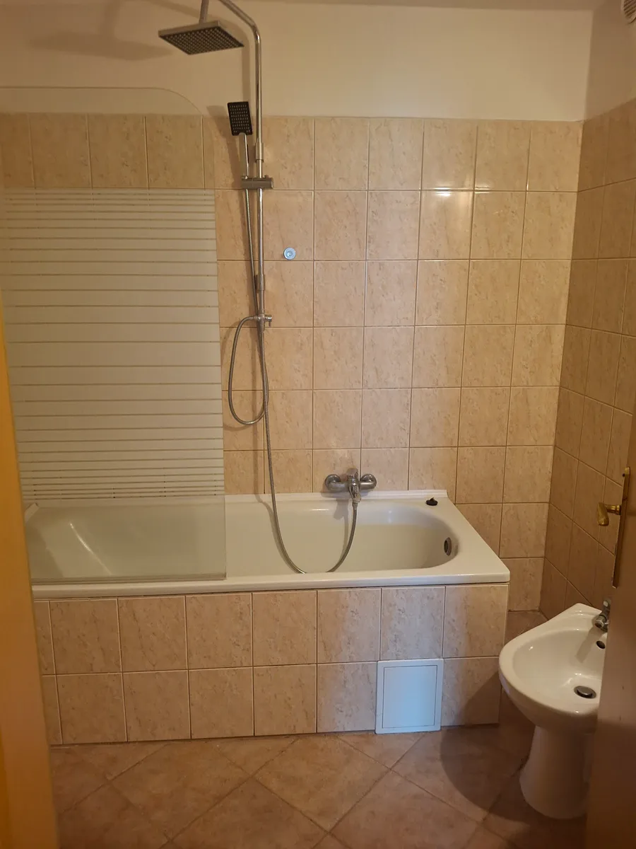 Bytová jednotka nabízí 2 samostatné pokoje v přízemí. V jednom z nich vestavěná šatní skříň. Koupelnu s vanou a bidetem a samostatnou toaletou. V chodbě plynový kotel pouze pro byt. Po točitém schodišti se vchází do patra s obývacím pokojem, kuchyňským koutem , který je vybavený varnou deskou, digestoří, elektrickou troubou a myčkou na nádobí. Z obývacího pokoje se vchází na venkovní terasu situovanou též do klidného vnitrobloku. Další prostorná koupelna s vanou a toaletou.