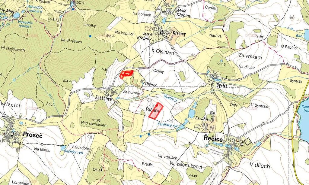 Ve vedlejším katastrálním území Řečice u Humpolce se jedná o dvě sousedící parcely číslo 148/10 a 151/2. I ty jsou vedené na LV 27. Na obou je orná půda.
