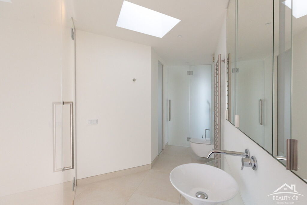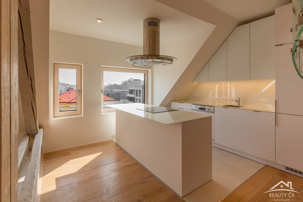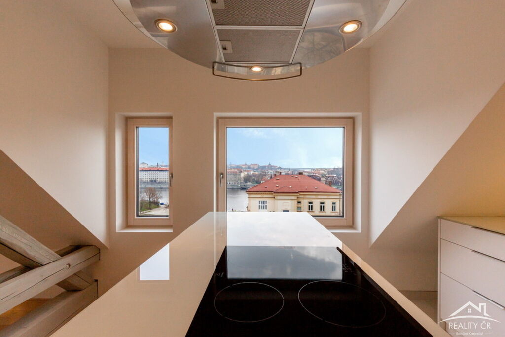 Pronájem nového exklusivního bytu s jedinečnými výhledy na Vltavu a terasou v atraktivní lokalitě v Praze 5 (Smíchov) o rozloze 156m2. Moderní bytová jednotka je svou atmosférou a nadstandardní kvalitou provedení včetně klimatizace a citlivým použitím materiálů sklo, kov, dřevo s důrazem na celkový pocit vzdušnosti a otevřeného prostoru velmi atypická a exklusivní. Ojedinělou koncepcí a charakterem výjimečnosti vyhoví i nejnáročnějším požadavkům současné doby a stylu. První patro vstup. hala , koupelna, šatna, pokoj, schodiště, kuchyň s obývákem - druhé patro, 2x pokoj, 2x koupelna, šatna, terasa. V bytě je instalován zabezpečovací systém s centrálním napojením na bezpečnostní službu. Zařízení viz foto. Úklid v domě zajišťuje externí služba. Možnost zaslání půdorysů videa apd. Nájem 43000Kč měsíčně + energie podle počtu osob, provize 1x nájem. Pouze pro solventní zájemce bez větších domácích mazlíčků. Parkování na ulici. Pro více informací mě neváhejte kontaktovat. Volné od 30.11.2025.