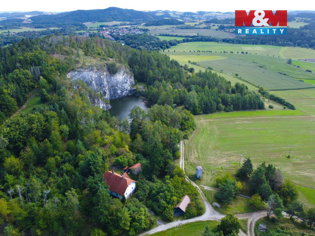 K prodeji patří soukromé jezero v zatopeném lomu o rozloze 15 000m2 se 2 přístupovými cestami a udržovanými plochami. Nemovitosti jsou vhodné jako rodinné sídlo nebo pro komerční využití (glamping, kemp, festivaly, svatby, retreaty…) Celková plocha činí 111 000 m² zahrnující vlastní lesy, louky i pole.