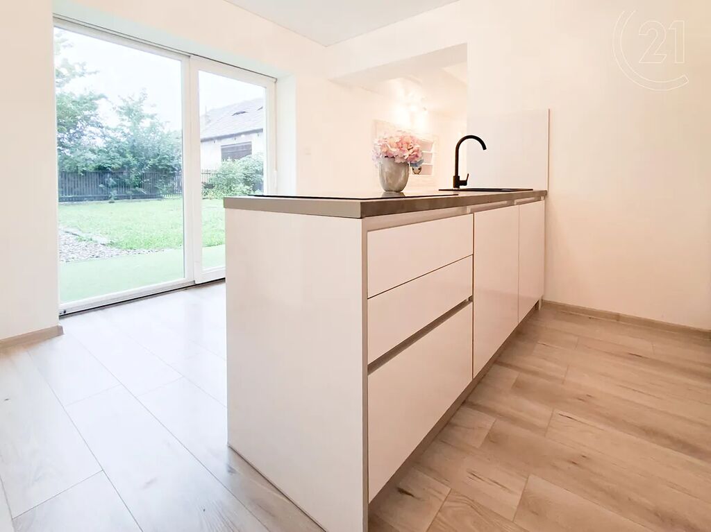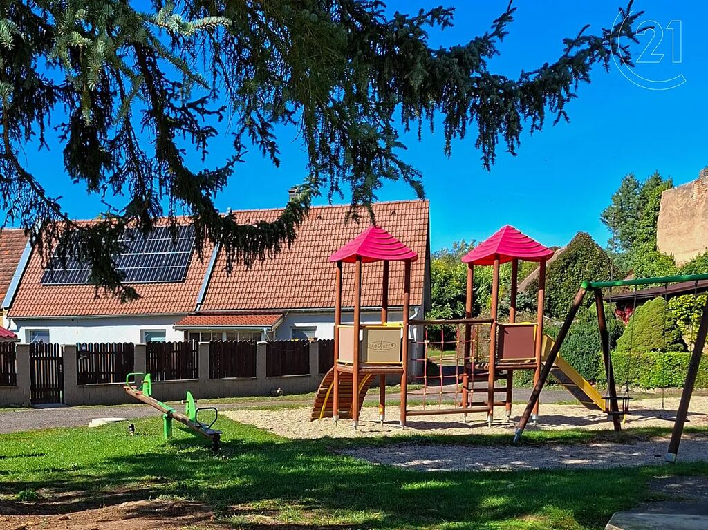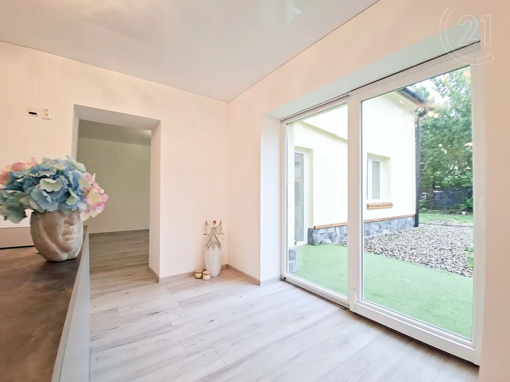 Z obývacího pokoje a kuchyně je přímý vstup na rovinatou zahradu o rozloze 300m2,která je ideální pro chvíle strávené na čerstvém vzduchu.