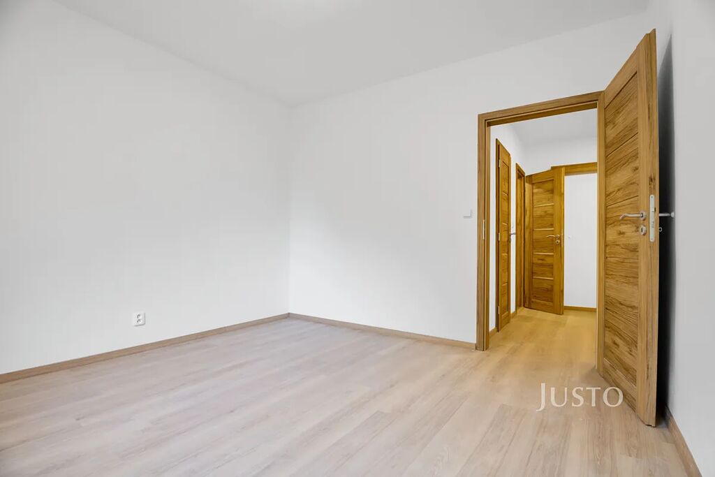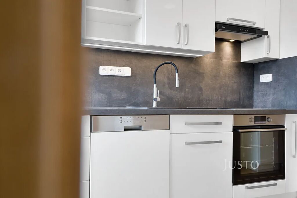 Interiér bytu prošel kompletní modernizací a nabízí světlou kuchyň s nadčasovou linkou, vestavěnou myčkou, elektrickou troubou a varnou deskou. Koupelna je vybavena vanou i sprchovým koutem, sanitární zařízení a obklady byly zvoleny v příjemných neutrálních tónech, které působí velmi elegantně. Toaleta je oddělená. Podlahy jsou řešeny v kombinaci kvalitního vinylu a dlažby, interiérové dveře mají dřevěný design a podtrhují moderní atmosféru bytu.