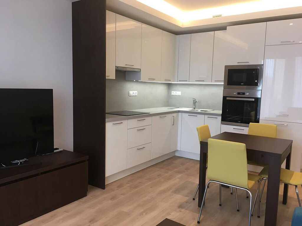 Opravdu zajímavý byt 2kk s výhledem z 7. patra moderní budovy. Byt je kompletně zařízený a naleznete v něm tedy veškerý nábytek a vybavení, a to i včetně nádobí či přikrývek! V koupelně vás jistě potěší příjemné podlahové vytápění. Vysokorychlostní internet v ceně je samozřejmostí.