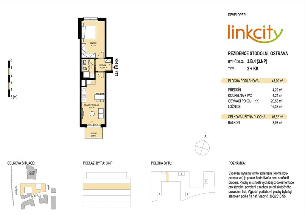 - dispozice 2+kk se 47 m2 podlahové plochy