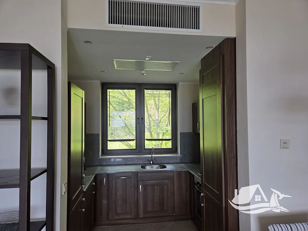 Představte si ráno, kdy první paprsky slunce pronikají přes panoramatická okna a prosvětlují prostornou denní část s kuchyňským koutem. Tento apartmán o celkové ploše 167 m² na posledním patře Hillside Village nabízí jedinečnou kombinaci soukromí a komfortu resortu, který patří mezi nejprestižnější na bulharském pobřeží.