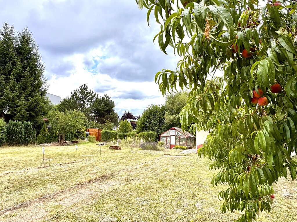 Zahrada: Na pozemku roste broskev a ořech, které dodávají zahradě kouzlo.