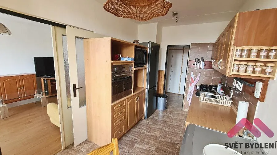 Byt ve čtvrtém patře panelového domu. Byt je částečně zařízen ( viz. fotografie), ale nábytek lze po dohodě odstranit. Dvě samostatné ložnice ( jedna s velkou vestavěnou skříní), koupelna po rekonstrukci se sprchovým koutem, Kuchyně se spotřebiči ( lednice, myčka,pračka, trouba). Součástí kuchyně je jídelní kout a vstup na zasklenou lodžii. V bytě je dále komora a součástí pronájmu je sklep. Jedná se o klidnou lokalitu se spoustou zeleně a dobrou dostupností do centra. 15 minut autobusem na metro Kačerov. K bytu lze pronajmout uzavřenou samostatnou garáž kousek od domu za cenu 2.200Kč.