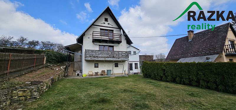 Pozemek je oplocený, udržovaný a nabízí příjemnou zahradu, venkovní krytou terasu a klidné prostředí s orientací na jih.