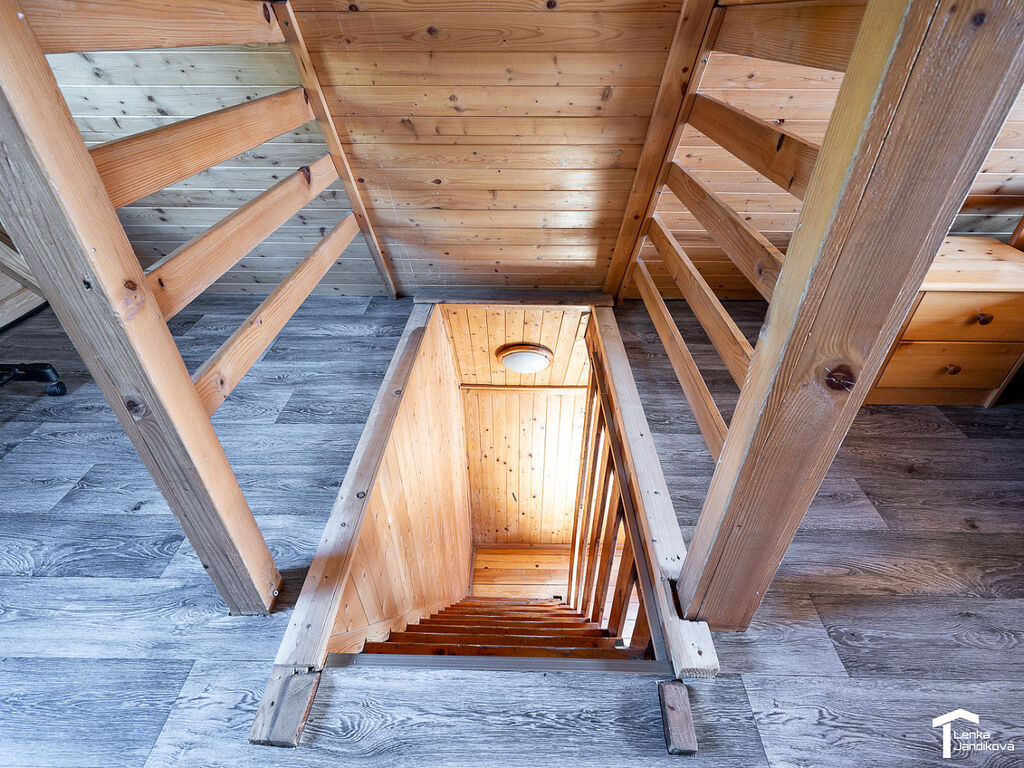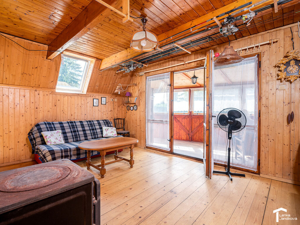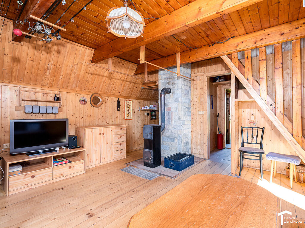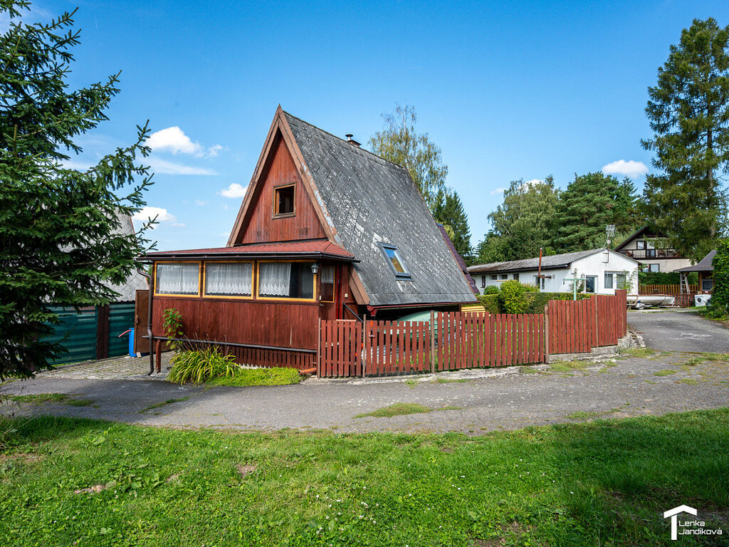 Chata stojí na vlastním pozemku s výměrou 181m² a byla postavena v roce 1987. Je napojena na obecní vodu, má zavedenou elektřinu a odpad je svedený do septiku. Vytápění je řešeno pomocí kamen, která jsou napojena na nový komín s nerezovou vložkou. Ohřev vody je řešen pomocí elektrického bojleru. Patrová chata s podlahovou plochou 42m² disponuje prostorným obývacím pokojem, kuchyňským koutem, verandou a dále vstupní chodbou s úložným prostorem a zádveřím, kde je vstup do koupelny. Koupelna je osazena sprchovým koutem a je spojená s WC. V patře je velký světlý pokoj. Na dům navazuje garáž. .