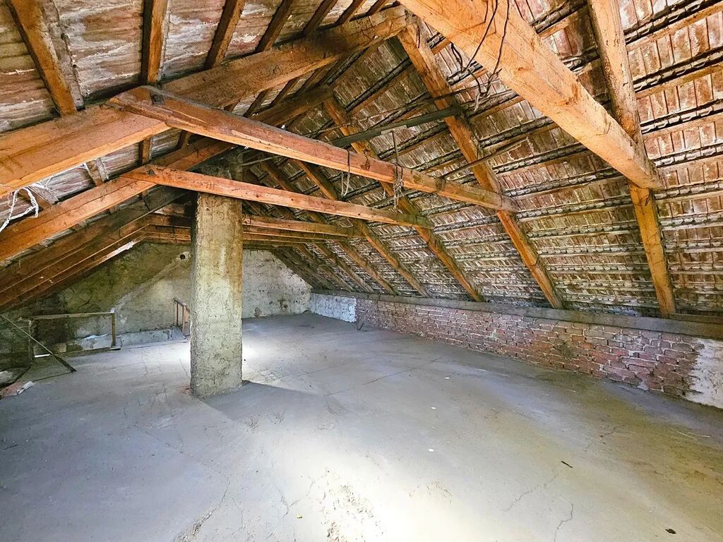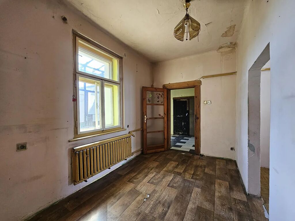 Dispozice přízemí v aktuálním stavu sestává ze tří obytných místností, chodby, verandy a koupelny s provizorní kuchyní v přístavbě do zahrady. Dům je určen ke kompletní rekonstrukci, při které se nabízí vybudování obytného podkroví (betonová podlaha o ploše 57 m2), případně je možná demolice a nová výstavba. Stavebně technické prvky jsou v původním stavu včetně elektroinstalace, rozvodů, oken a dveří. Střecha zachovalá včetně trámů. Topení je ústřední na TP, kotel umístěn ve sklepě o výměře cca 14 m2.
