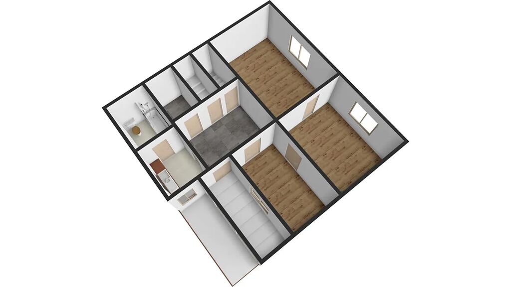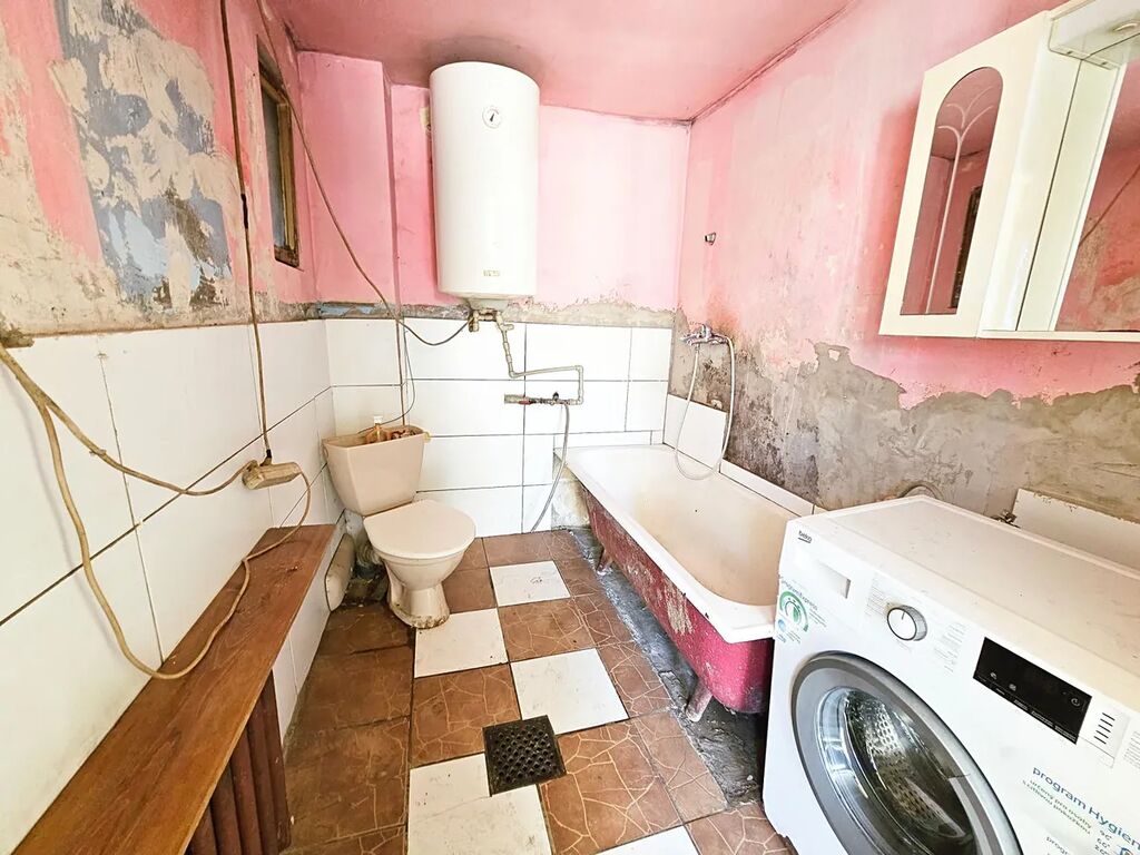 Dispozice přízemí v aktuálním stavu sestává ze tří obytných místností, chodby, verandy a koupelny s provizorní kuchyní v přístavbě do zahrady. Dům je určen ke kompletní rekonstrukci, při které se nabízí vybudování obytného podkroví (betonová podlaha o ploše 57 m2). Po úpravě přízemí podle potřeby, které má čistou vytápěnou plochu 62 m2 může dům sloužit jako plnohodnotné bydlení moderního typu s podlahovou plochou cca 110 m2. Stavebně technické prvky jsou v původním stavu včetně elektroinstalace, rozvodů, oken a dveří. Střecha zachovalá včetně trámů. Topení je ústřední na TP, kotel umístěn ve sklepě o výměře cca 14 m2.
