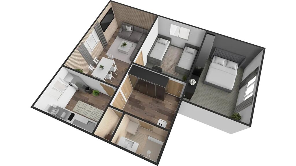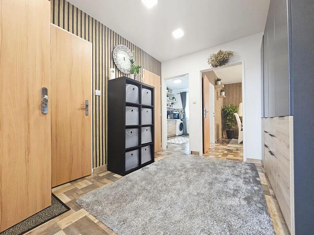 Byt se nachází v prvním patře bytového domu s pouze čtyřmi bytovými jednotkami a prošel kompletní rekonstrukcí. Má nová plastová okna, omítky, interiérové dveře, kuchyňskou linku, koupelnu se sprchovým koutem. Dispozice sestává z velkého obývacího pokoje o výměře 19 m2, kuchyně o výměře 9 m2, dvou ložnic (13 m2, 17 m2), chodby s velkou vestavěnou skříní 9 m2, koupelny 3,5 m2 a toalety se samotným vstupem. V chodbě je umístěn nový elektrokotel, který vytápí byt.